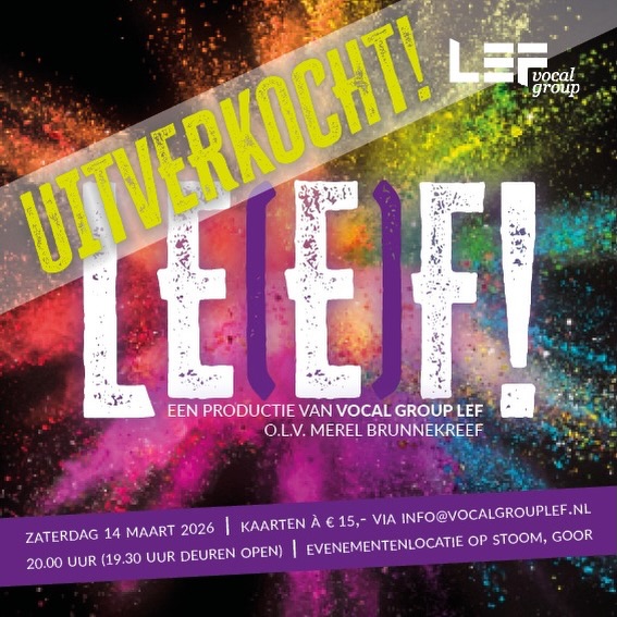 Bijzijn is meemaken, dus koop je kaarten snel via info@vocalgrouplef.nl.